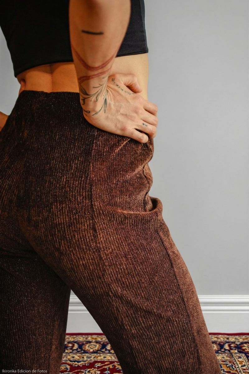 Pantalón pana lurex café bota recta