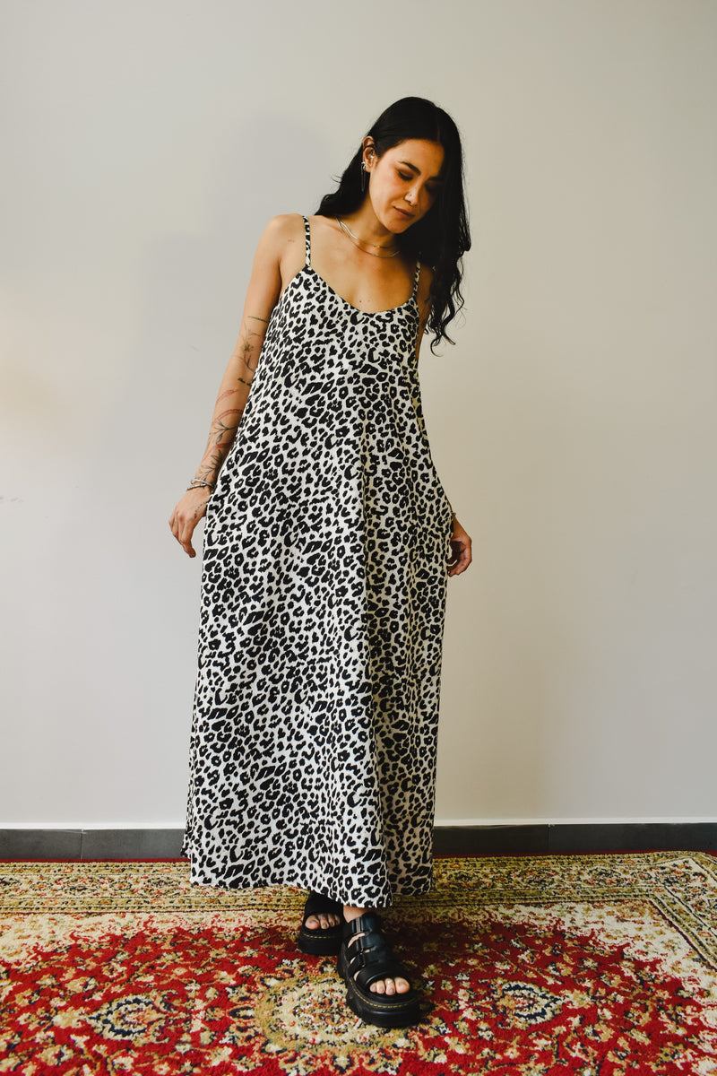 Vestido largo animal print blanco